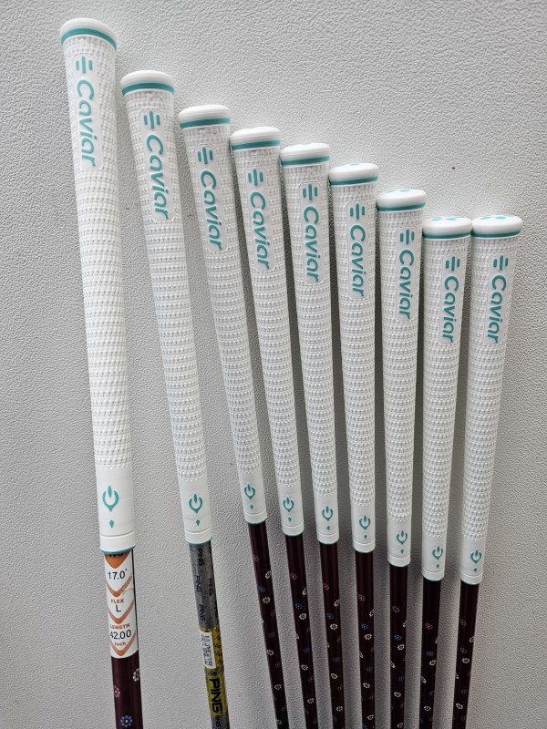 캐비어 아보카도 여성 그립의 쫀득함에 반하셔서 모든 클럽을 교체 하셨습니다. 색상도 흰색에 민트색 포인트가 들어가서 깔끔한 이미지가 그려 지네요.